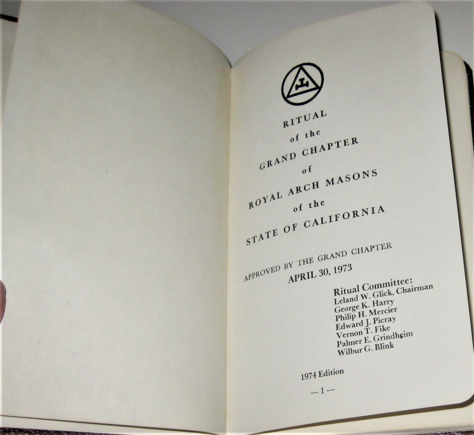Ritual Of The Grand Chapter Of Royal Arch Masons Of The State Of California 1974 Ebay